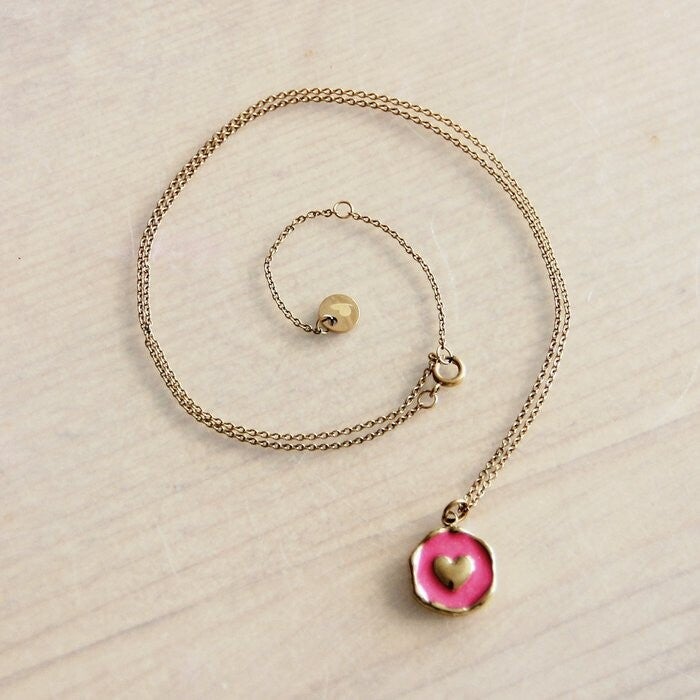 RVS fijn kettinkje met ronde hart bedel – fuchsia/goud