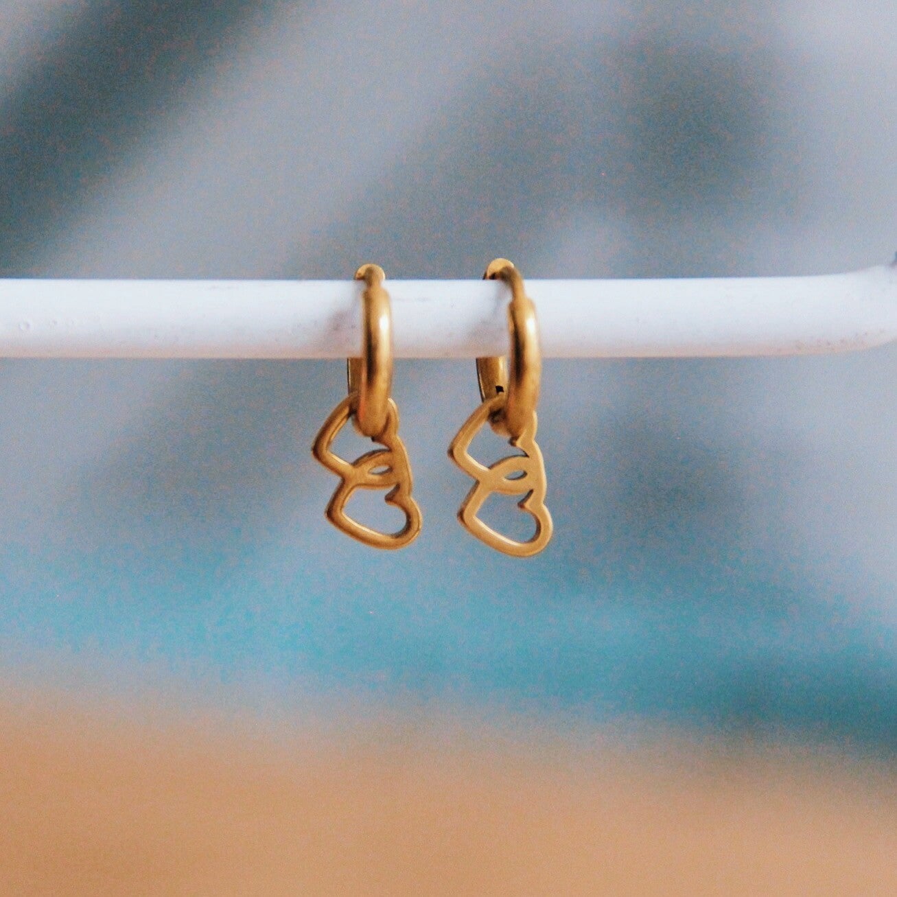 RVS creolen met dubbel hartje – goud