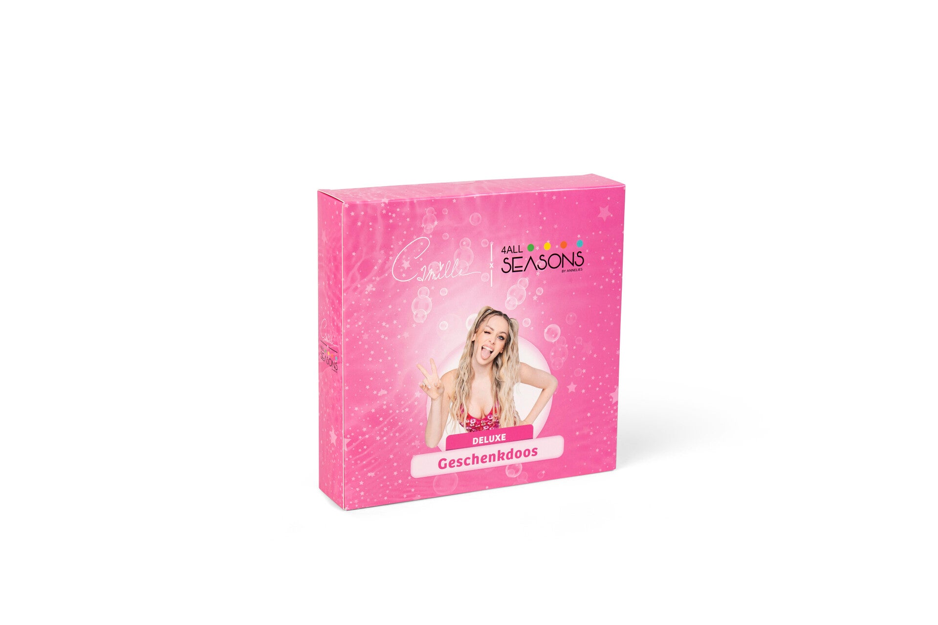 - Foaming Shower Gel Pink & Glitter 200ml- Bodylotion Spray Glitter 200ml- Badschuim (Pink -> Schuim Wit) 250ml- EXCLUSIEF IN DE GESCHENKDOOS: Hairspray Glitter 250ml
